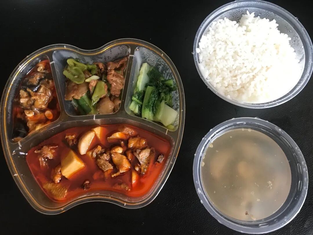今天的隔离餐稍晚送达,不知道是川菜加持还是我太久没有吃过中国饭菜,这顿隔离餐被我吃的碗盘光光,同学们也都表示好吃的不行。