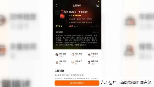 店家告诉记者,由于目前正值暑假,所以他们的生意相当火爆,要来体验都得网上预约,记者随即打开一个网络团购平台,搜索“南宁市密室人气榜”,看到这家店目前排名第一,其中几款以恐怖为主题的密室逃脱,从中午12点到晚上7点半的场次,连续三天都已经被全部订满。