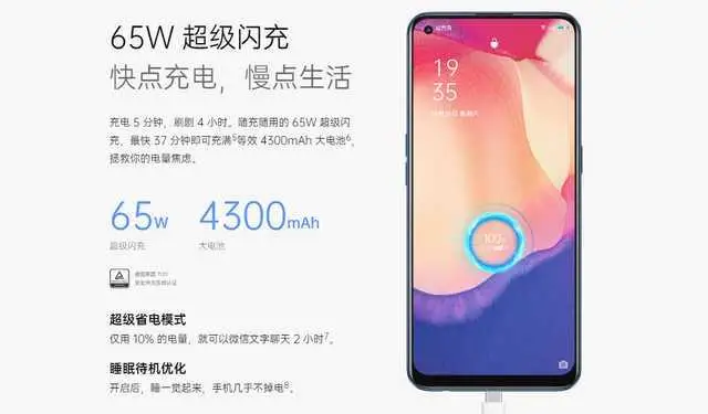 值得注意的是,OPPOReno4SE的Slogan是“超级闪充,超闪光芒”,后半句“超闪光芒”指手机背面的全新“小光芒”设计,前半句指的就是Reno4SE继承系列产品的核心卖点65W超级闪充了。65WSuperVOOC2.0超级闪充最初随OPPORenoAce亮相即惊艳全场,成为快充行业标杆,在后续Reno系产品中也取得了不错的口碑。