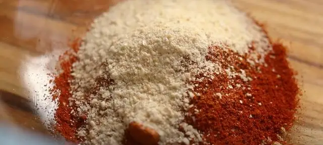 炸鸡粉:涂抹鸡肉剩下的调料,加上面粉,玉米淀粉和发酵粉搅拌均匀。