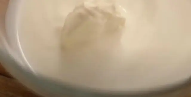 首先,盆中倒入250毫升牛奶,加入两汤匙酸奶。