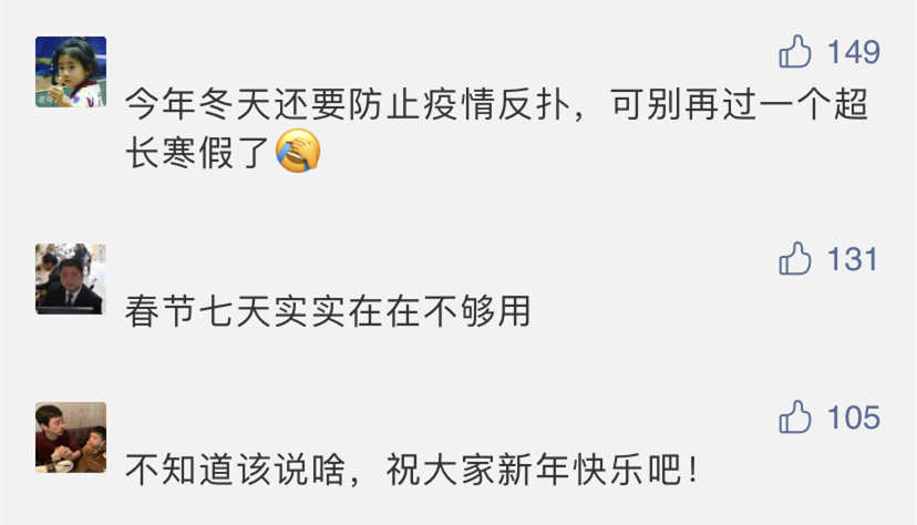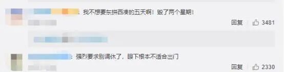 两周单休才换来五天长假,并且还是不能出门的五天长假,双休的网友们表示很不情愿,而单休的网友,则是留下了羡慕的泪水。