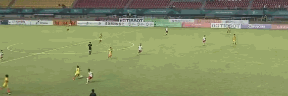 第14分钟,李梦雯前场右路传中到禁区,林宇萍头球攻门高出横梁。