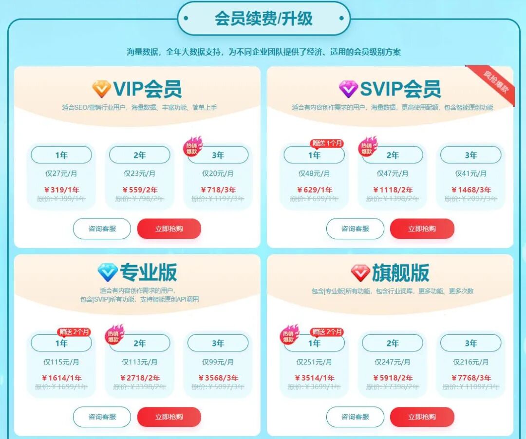 • 支持渠道专属定制功能:知乎引流大数据,写作工具(智能原创),流量与商机挖掘(关键词挖掘、行业词库),互联网流量运营(微信/头条/知乎/百度引流),短视频运营(抖音)