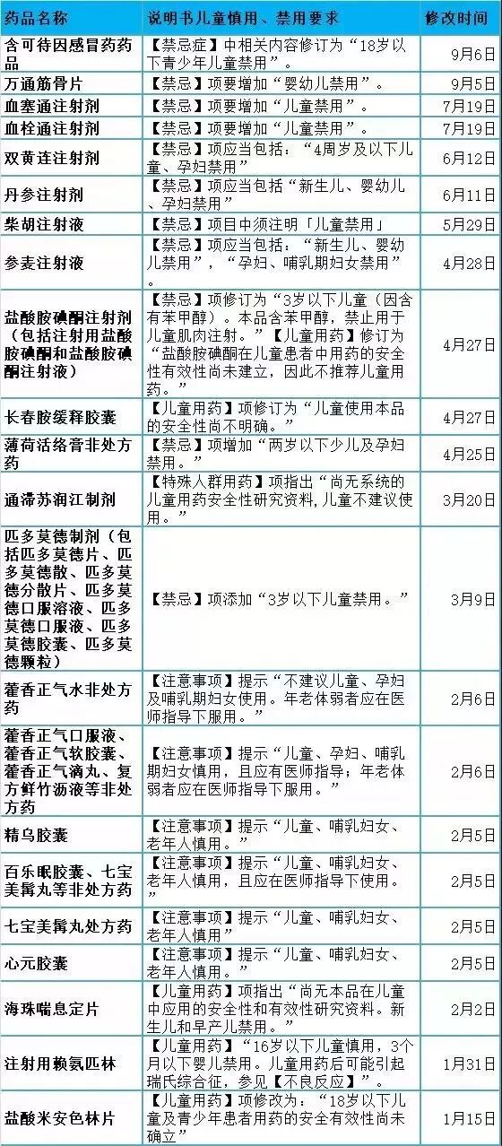 另外,关于一些药品对儿童限用、慎用的汇总如下: