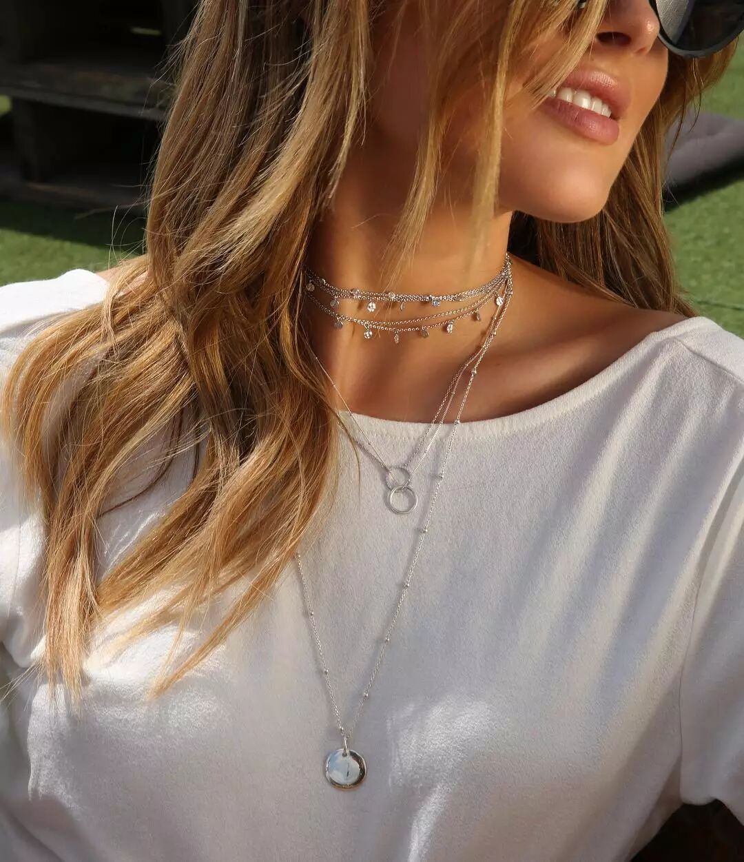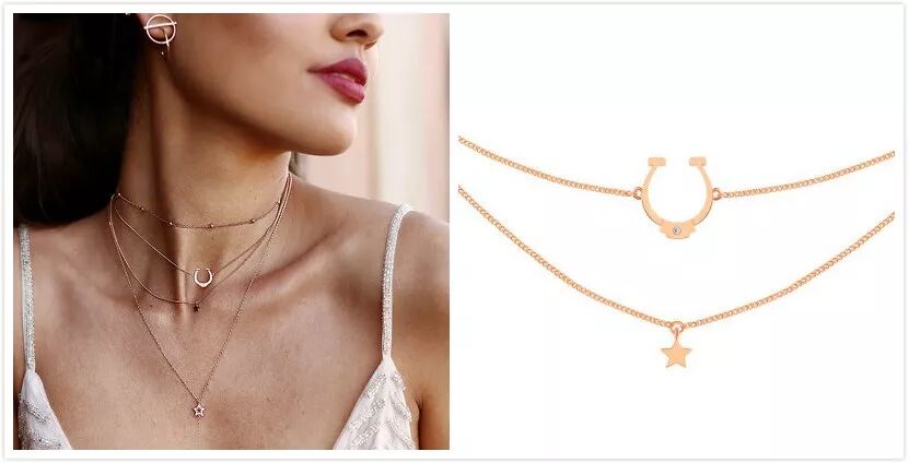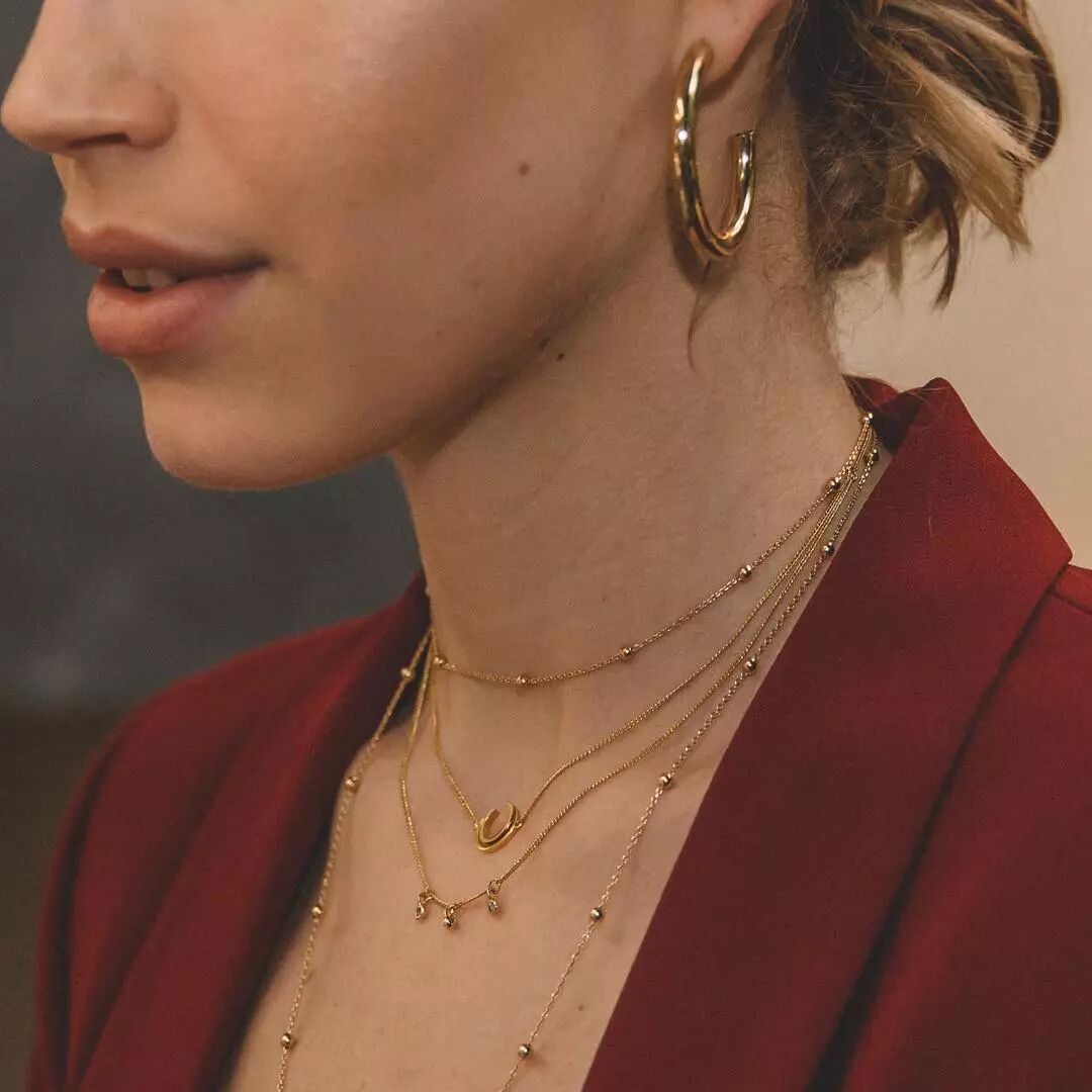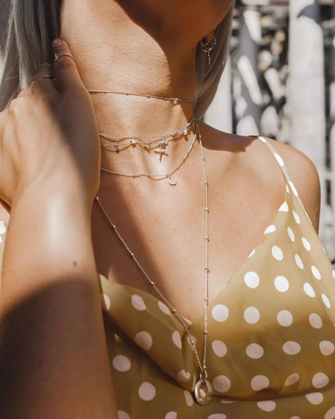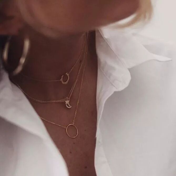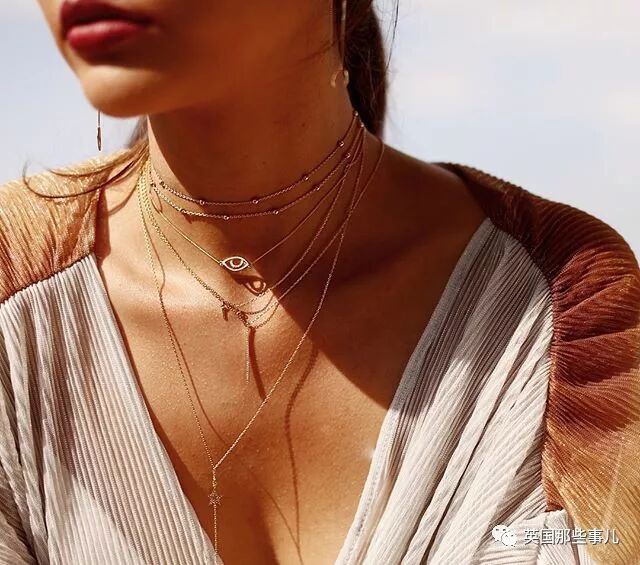 几条项链勾勒出的线条效果,完全不输一条剪裁修身的裙子,