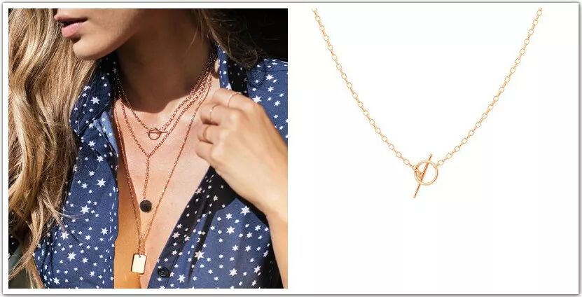 比如这种三角形图案长项链,可以搭配小西服上班戴,也可以和短项链叠戴,
