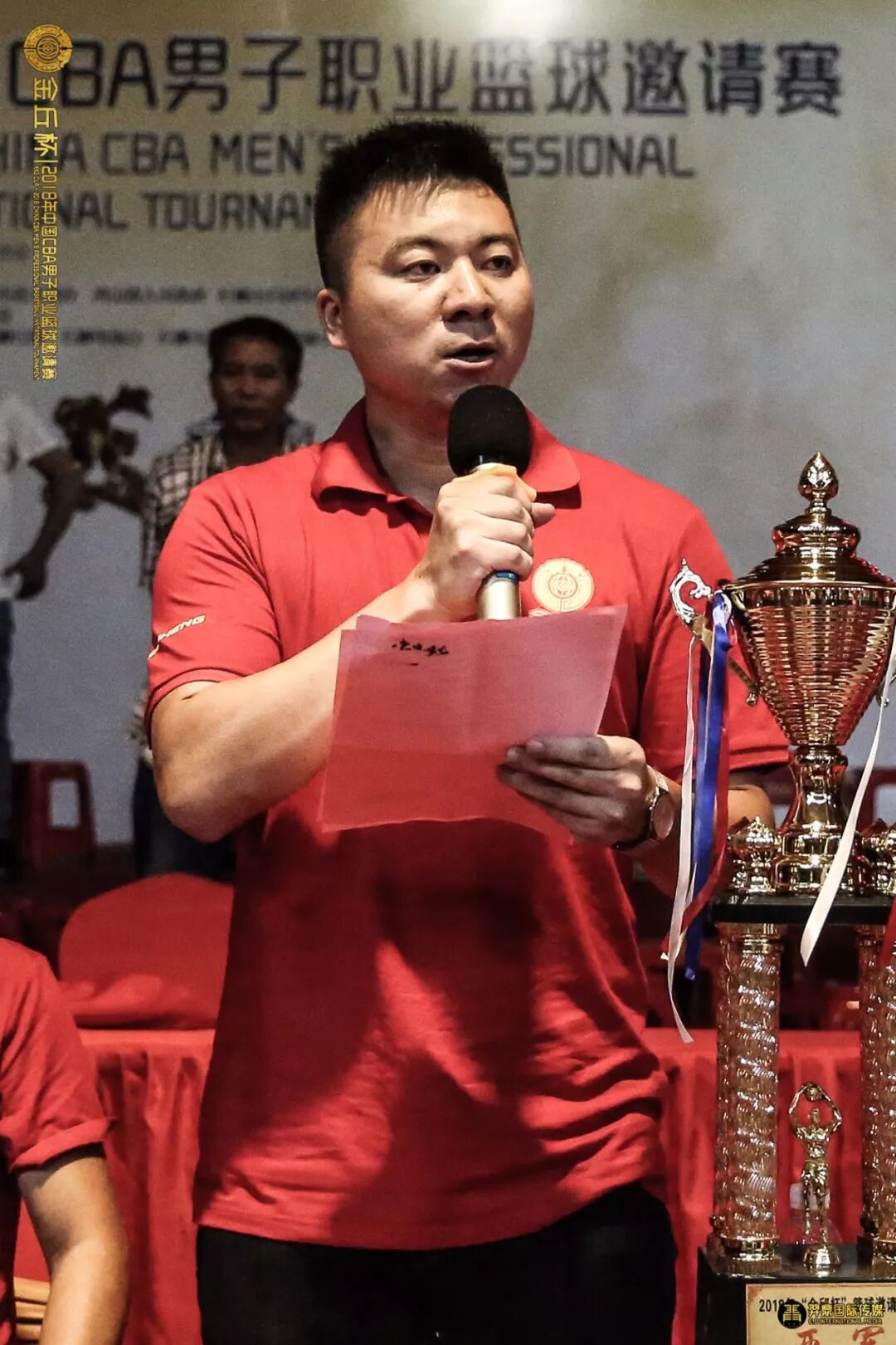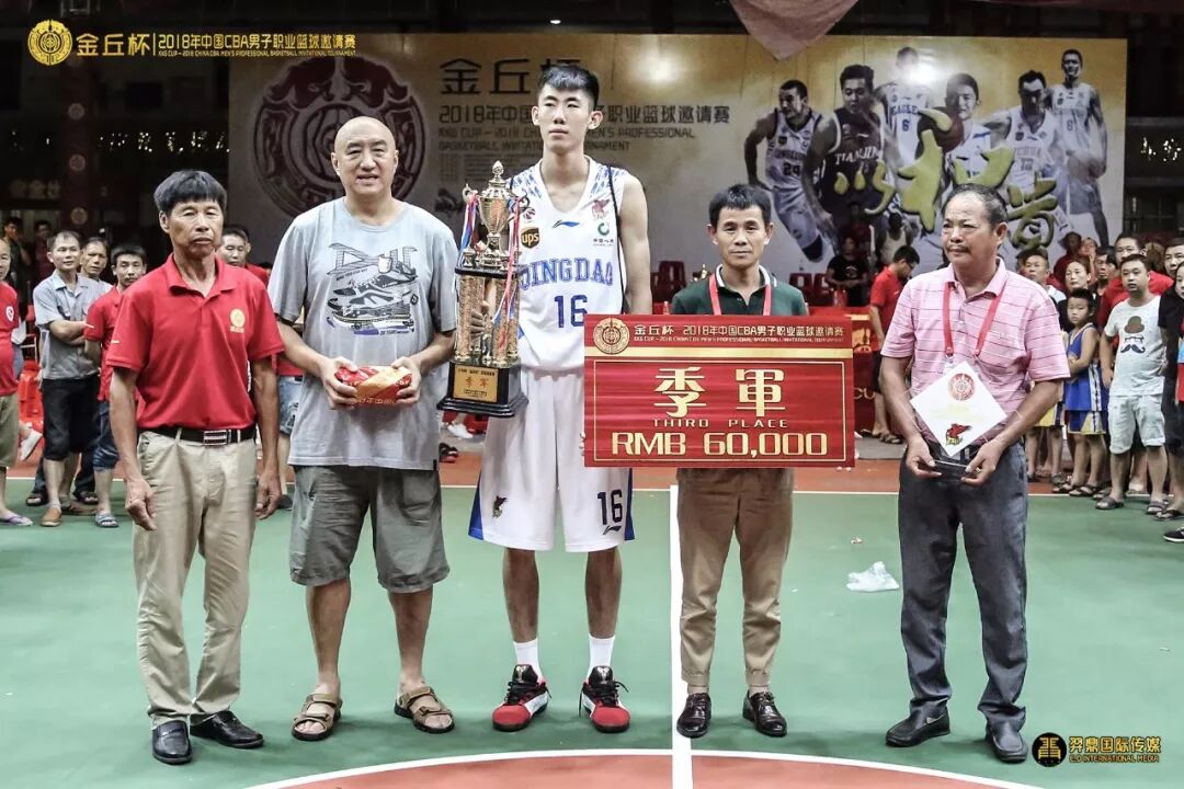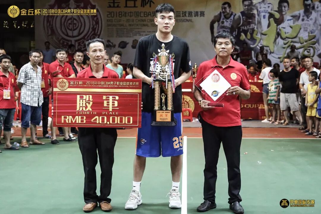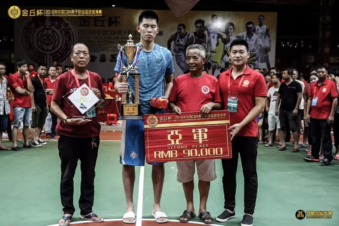 中共鸿山镇邱下村党支部书记蔡宇鹏先生、邱下村村委主任邱鸿泽先生、邱下村老人协会会长邱再成先生 为获得“金丘杯”2018年中国CBA男子职业篮球邀请赛冠军广州证券颁奖。