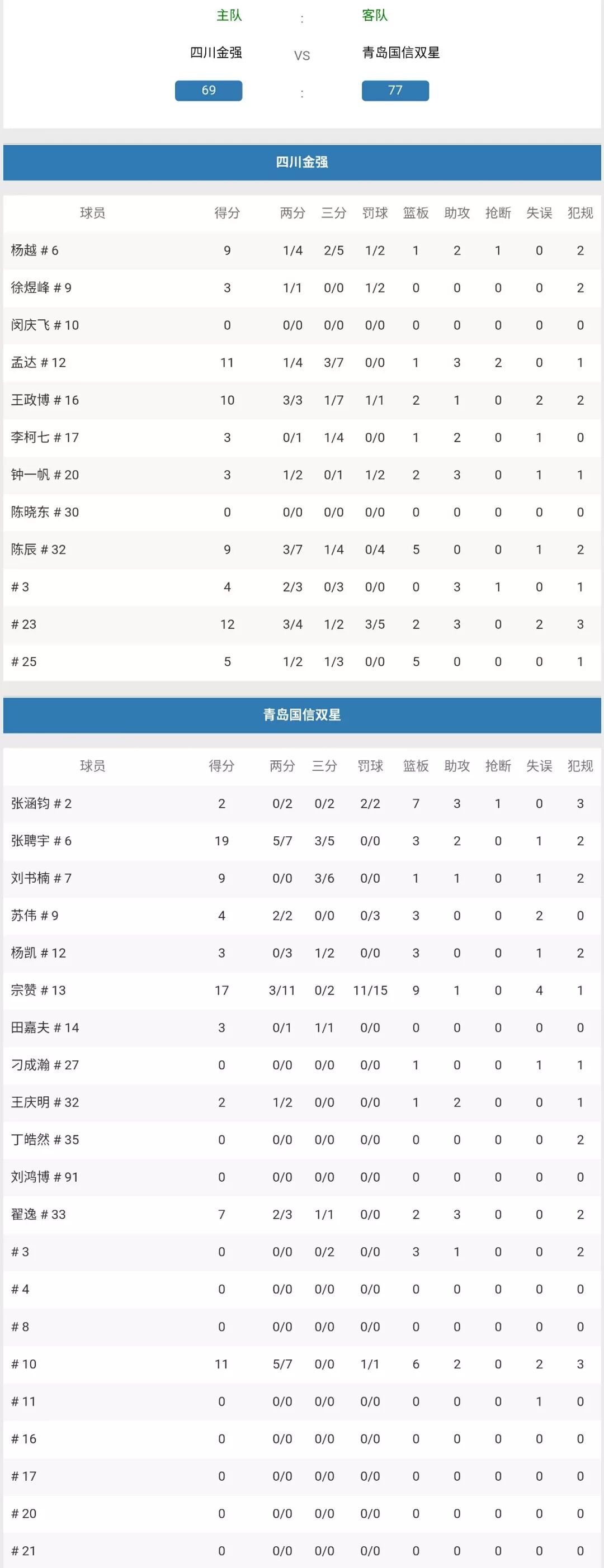 关键的时刻,青岛国信双星队通过宗赞、苏伟内线的强攻策应,帮助队友们在外线找到了更多的机会,全队联手发力将比分拉开,以69:77大胜四川金强,获得季军。