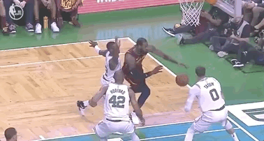 随后乐福开始发挥,连砍5分让双方比分第一次拉开到10分以上。詹姆斯造犯规依旧只能两罚一中,当时塔图姆的肩膀撞到了詹姆斯的右侧脸颊,这一次撞击相当于拳击赛场的KO,詹姆斯出现了晕厥的状况。当然塔图姆不是故意的,在罚完球后,詹姆斯缓慢走回到了更衣室接受检查。