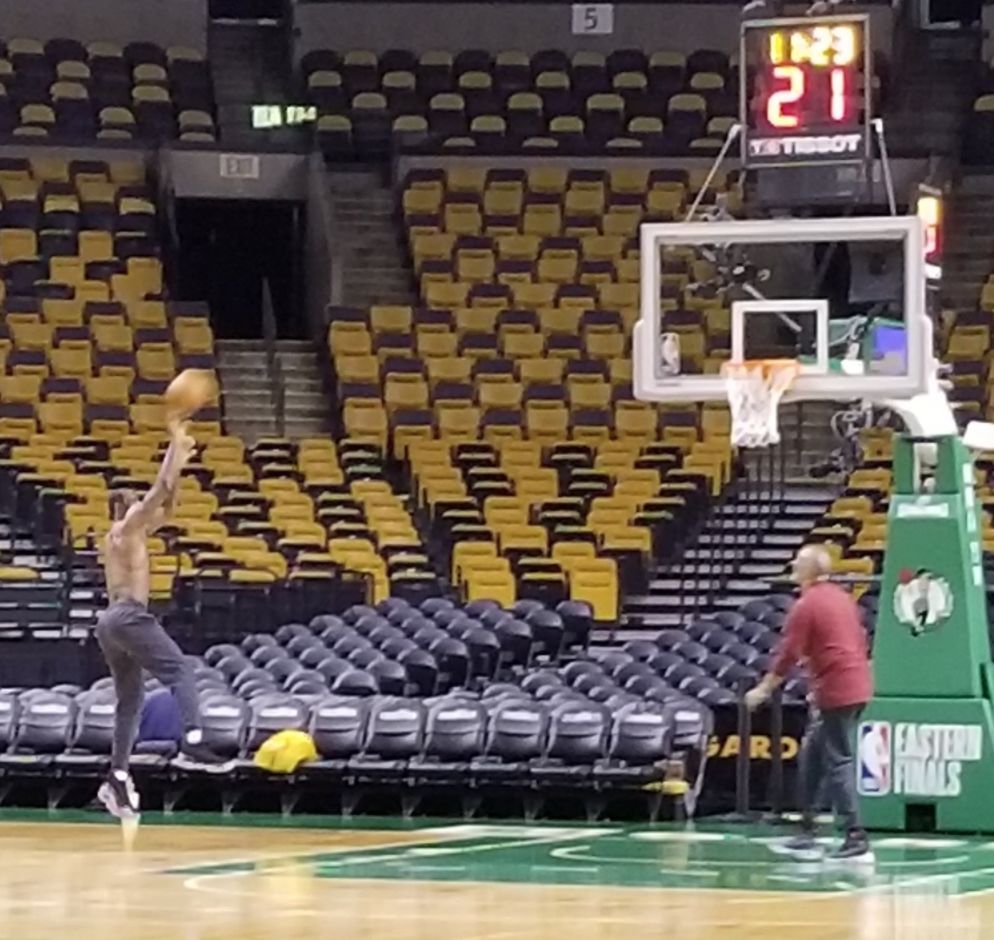 第一场表现差劲,第二场马上就能绝地反击,詹姆斯已经吹下了这样的牛逼。想要完成自己曾经许下的海口,肯定要比平常人多付出一些努力。不仅是生活中还是球场上,都是这么一个道理。所以詹姆斯今天提前好几个小时就来到了球馆训练,此时诺大的波士顿TD北岸花园球馆只有他跟训练师两个人在场上。