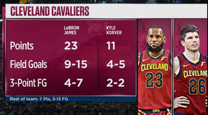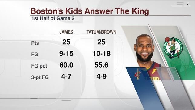 第一个回合就助攻科沃尔投中三分,凯尔特人还击5分后,科沃尔一个右侧圆月弯刀跑位接球中投再次命中。凯尔特人又还一个Answer Ball,詹姆斯迎着霍福德跳投命中,第二节还剩一半时间,双方打成了41-36。