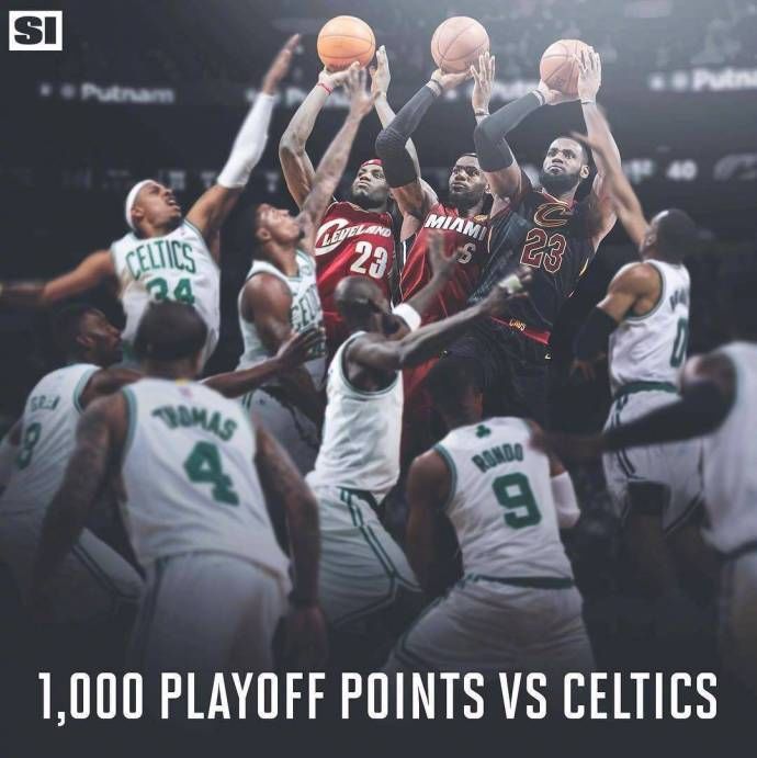 此役过后,季后赛生涯30分10助攻以上的比赛,詹姆斯有17次,排在历史第一位。詹姆斯面对凯尔特人职业生涯季后赛已经拿到了1036分(36场比赛),成为NBA历史上第一个在季后赛面对同一支球队拿到1000分的球员。