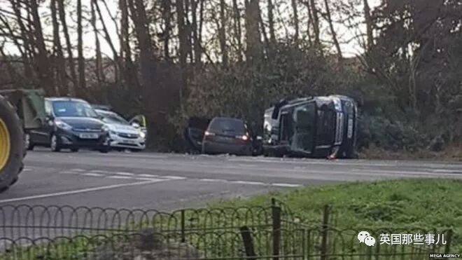 冲撞的力量非常之大,以至于让这辆路虎直接侧翻……